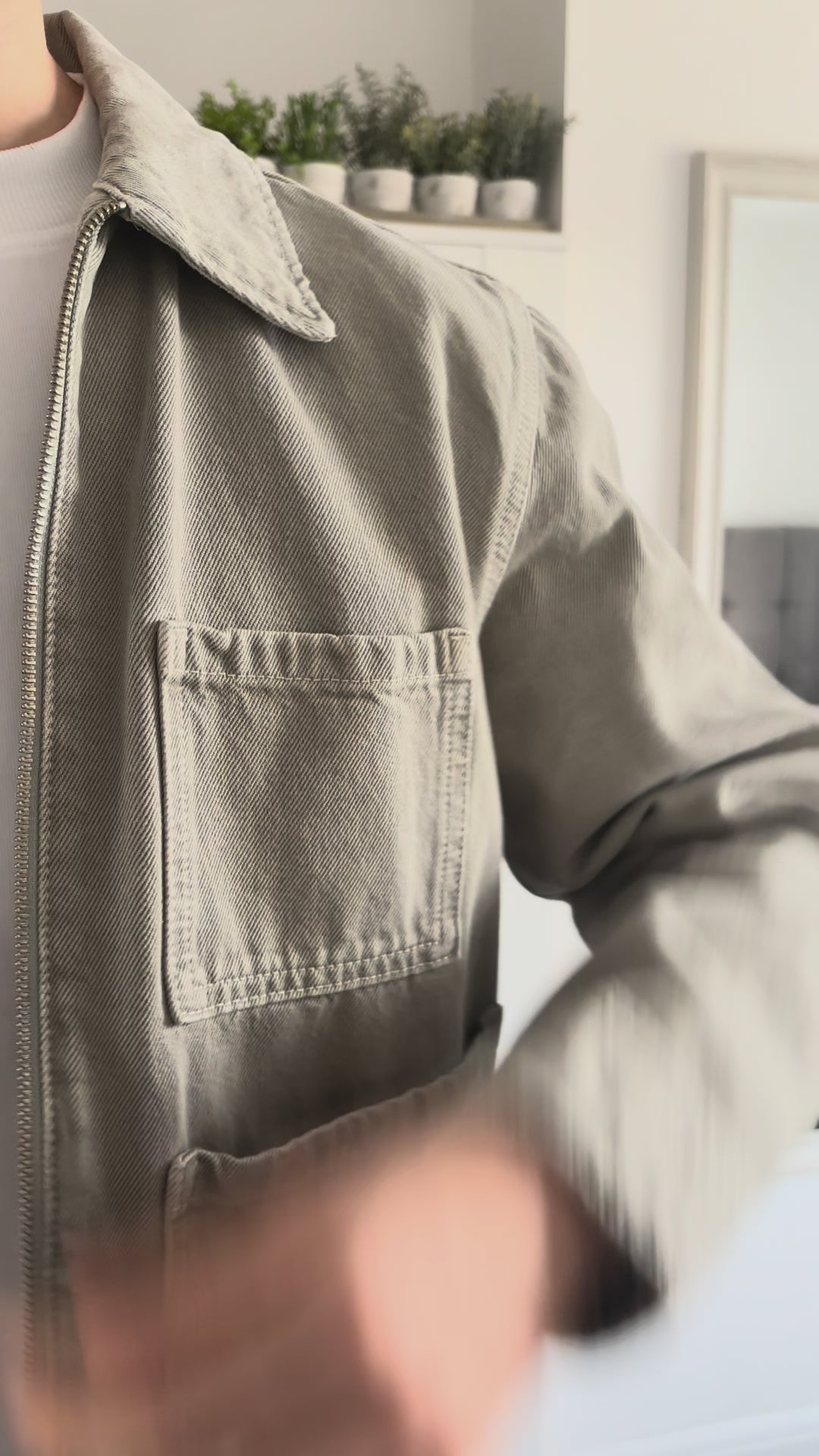 Utility Denim Jacke in Sandstone-Grau-Casual Meets Contemporary