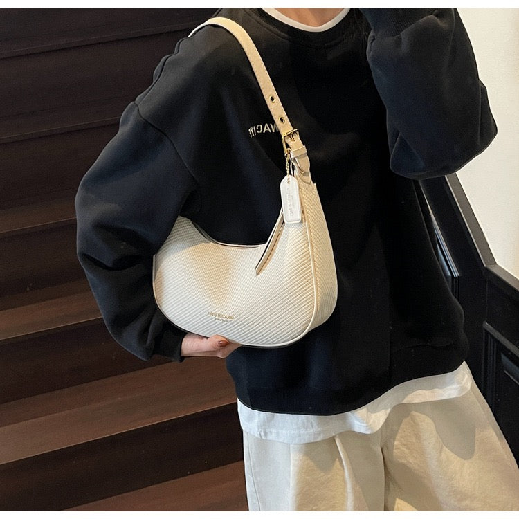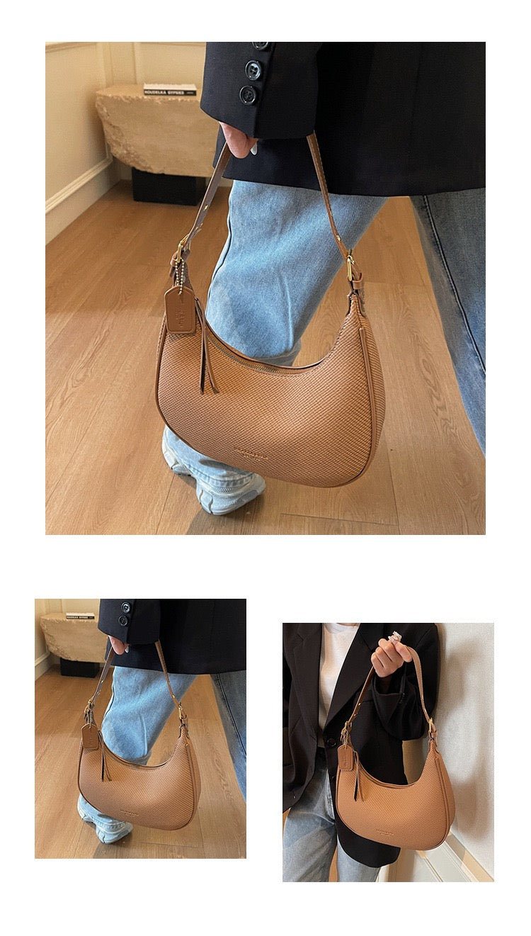 Entdecke unsere elegante Halbmond-Schultertasche – der perfekte Begleiter für Alltag, Büro oder Abendveranstaltung. Mit ihrem minimalistischen Design, der hochwertigen Struktur-Oberfläche und goldfarbenen Details verbindet sie zeitlosen Stil mit praktischer Funktionalität.