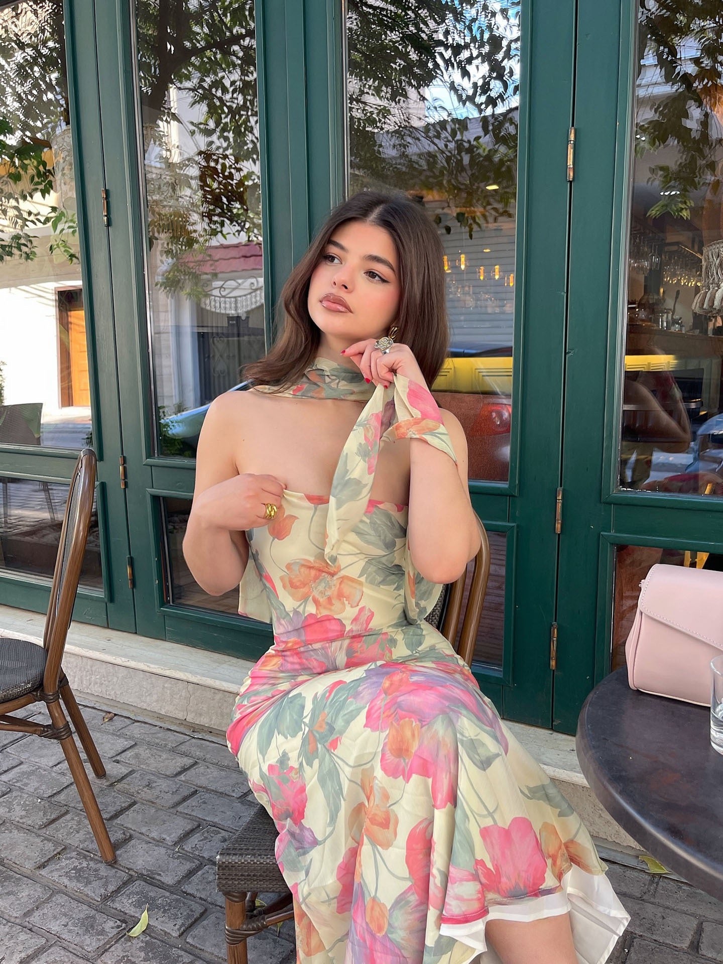 Tauche ein in die Leichtigkeit des Sommers mit diesem traumhaften, floralen Maxikleid. Das figurbetonte Design mit schmeichelndem Neckholder-Ausschnitt betont die Silhouette und sorgt für einen femininen, eleganten Look – perfekt für Gartenpartys, Hochzeiten oder stilvolle Cafébesuche.