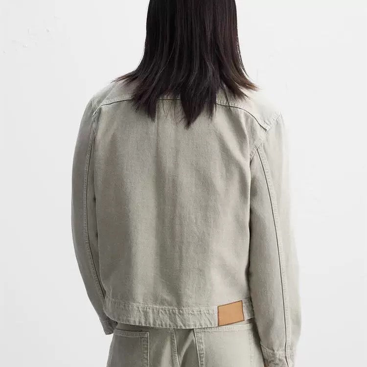 Diese stylische Utility-Jacke in angesagtem Sandstone-Grau verbindet minimalistisches Design mit urbaner Funktionalität. Gefertigt aus robuster Baumwolle mit weicher Haptik, besticht sie durch ihre klaren Linien, den klassischen Kragen und den frontalen Reißverschluss. Die vier aufgesetzten Taschen setzen markante Akzente und verleihen der Jacke einen lässigen Workwear-Twist.